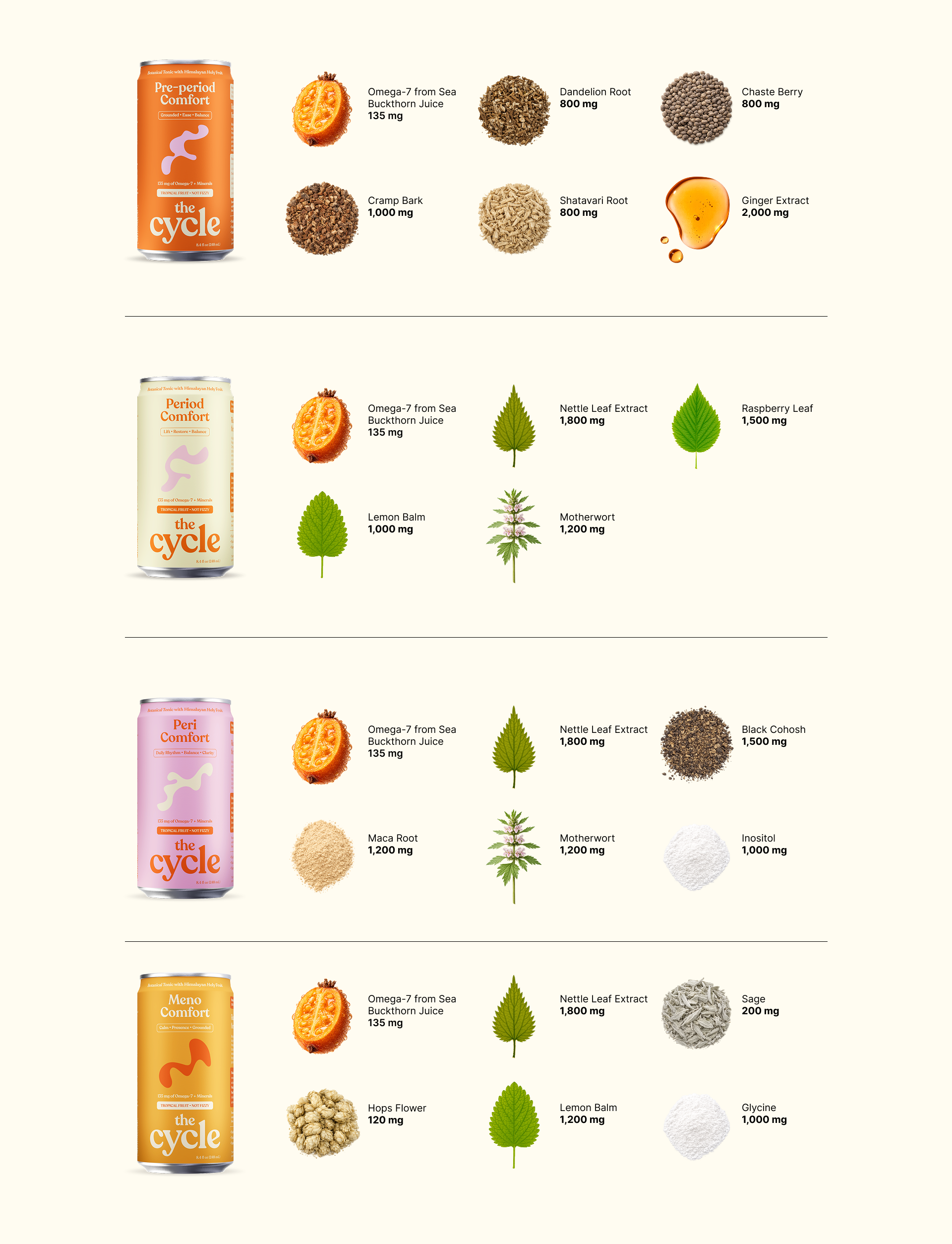 We chose a liquid format so each can of The Cycle provides a measurable amount of Omega-7 and herbs in one convenient serving.