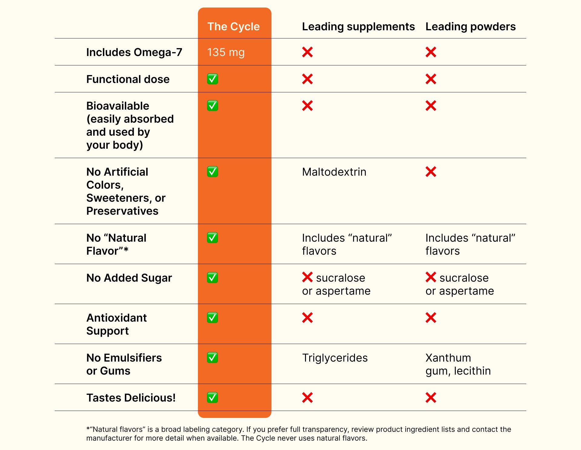 An ingredient like Omega-7 only supports you if it’s included at a functional dose, in a bioavailable form (like juice or puree) so your body can actually absorb it. Many other products on the market sprinkle trendy ingredients in amounts too small to make an impact, prioritizing label appeal.